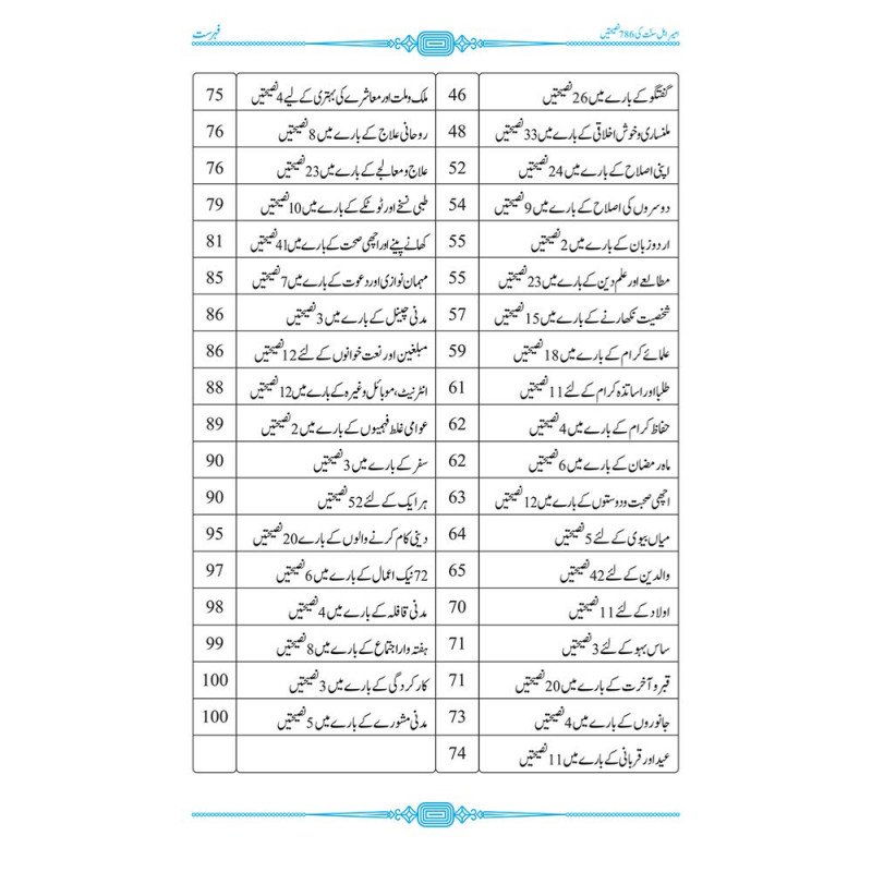 - 786 Valuable Nasihatain (Advice): Covers spiritual, ethical, and practical guidance for Muslims.