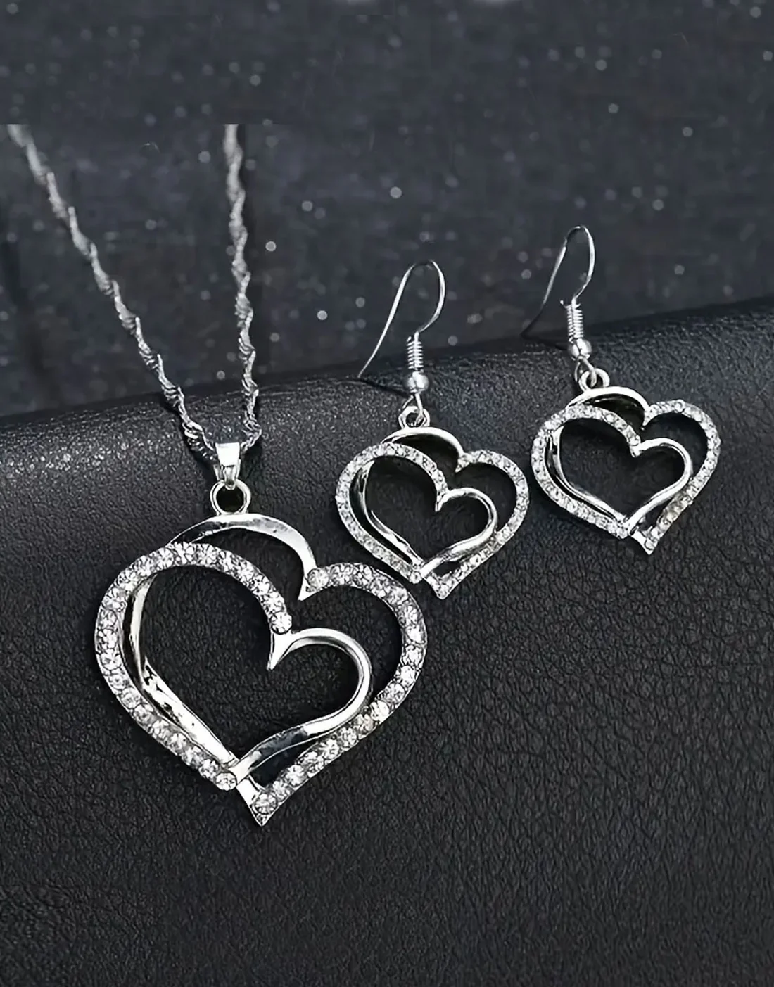 Elegant Sparkling Rhinestone Heart Shape Necklace Set for Girls