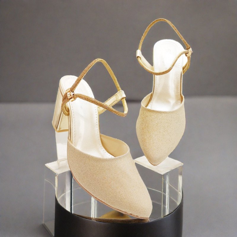 A dazzling choice for special occasions, these sling-back high heels combine elegance and glamour in one chic package. The lustrous golden upper gives a polished, sophisticated shine that catches the light beautifully — perfect for parties, dinners, weddings, or festive events. The sling-back strap wraps gently around the heel, offering a secure yet feminine fit while allowing your foot to breathe. With a high heel that lengthens the silhouette, these heels lend a graceful, statuesque look to any outfit — whether you’re matching a traditional dress, a formal gown, or a modern evening ensemble. Under the hood, a sturdy sole (often synthetic or PU-based for durability) balances style with stability, letting you walk confidently while wearing them. In short: these heels are all about making an impact — timeless glamour, festive-ready shine, and a flattering, elongating fit for women who want to stand out.