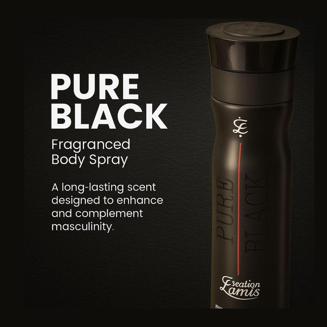 • Material: Liquid• Product Feature: Long Lasting Fragrance, 24 Hrs Sweat Resistance, Alcohol-Free, Refreshing, Mood Enhancing• Gender Type: Unisex• Color: Black• Package Includes: 1 x Body Spray Bundle• Quantity: 200 Ml• Highlights:• Unisex Fragrance: A versatile scent suitable for both men and women.• Long-Lasting: Enjoy a vibrant and refreshing fragrance that lasts for hours.• Fresh & Invigorating: A dynamic blend of notes that awaken the senses.• Convenient 200ml Size: Ideal for daily use, travel, or on-the-go freshness.• Affordable Luxury: Experience premium quality without breaking the bank.• Experience an unforgettable aura of freshness with Lamis Creation Everyone & Pureblack Body Spray, a perfect companion for your everyday routine.