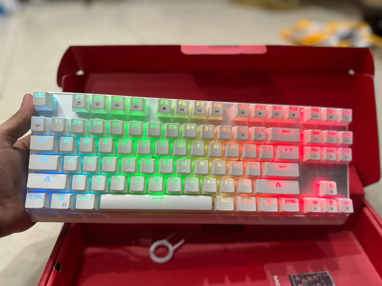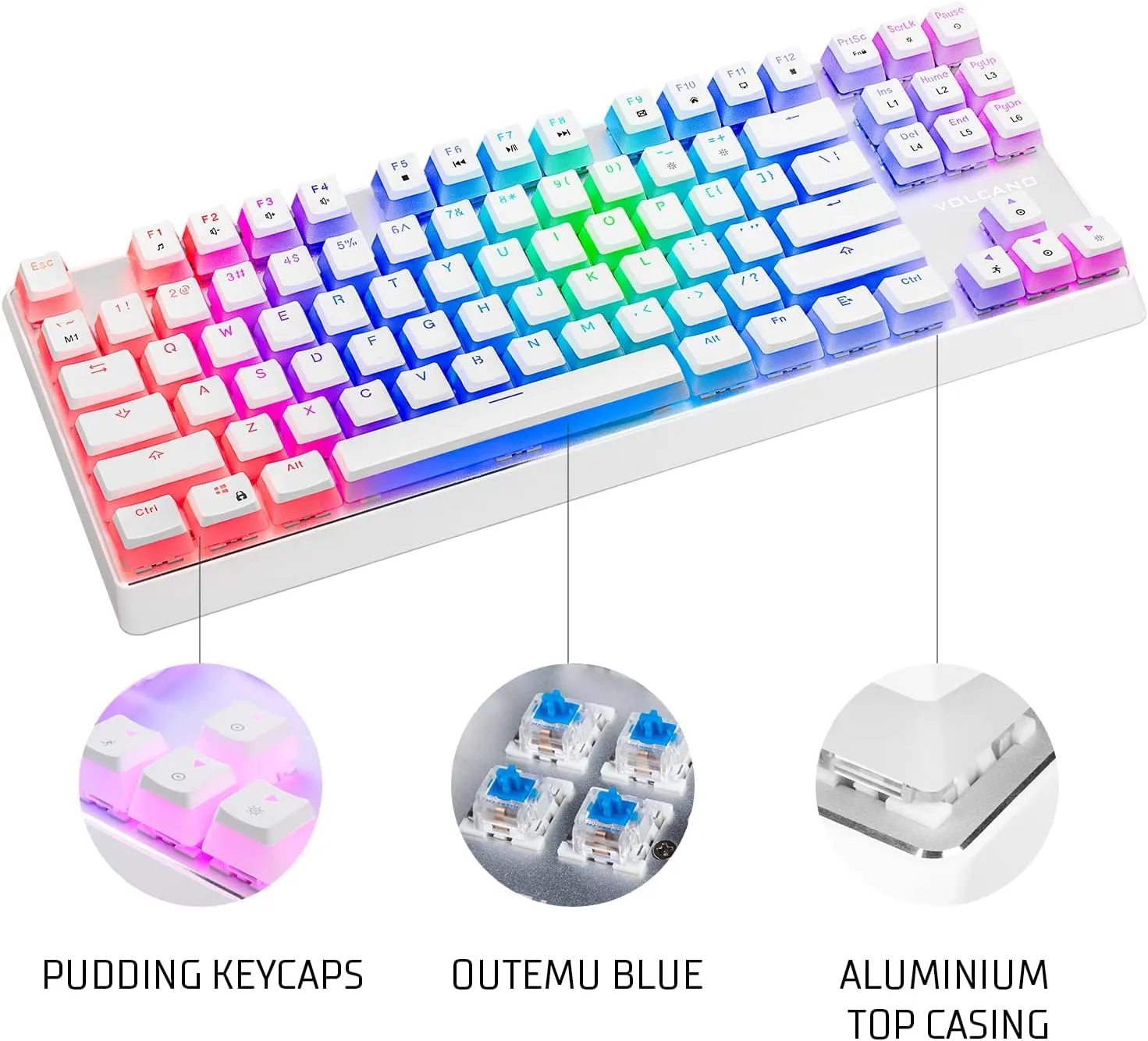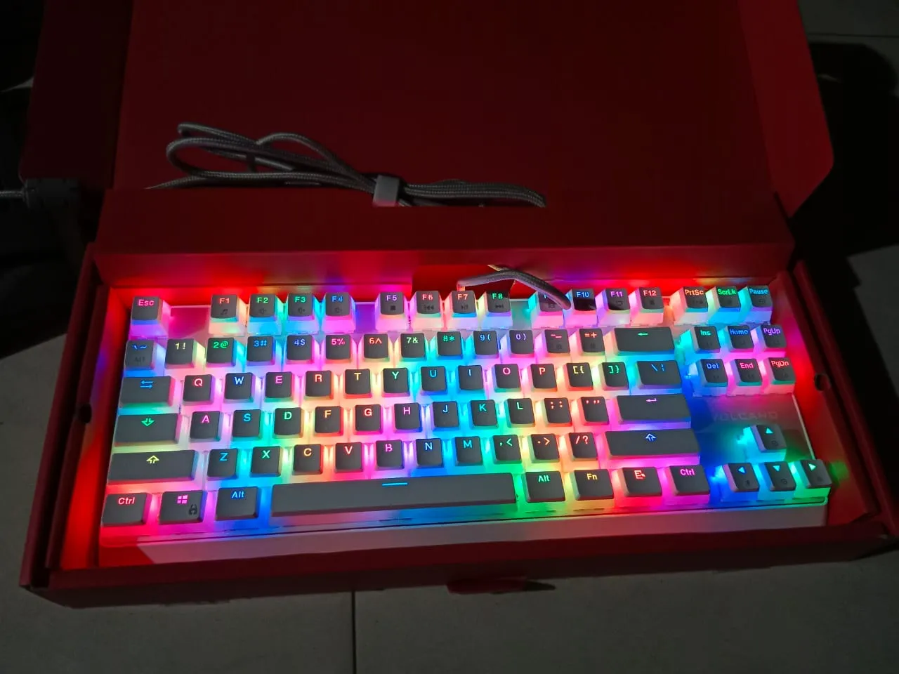 The pudding-style keycaps let RGB lighting shine through beautifully, creating vibrant effects across the keyboard — especially in low light.
