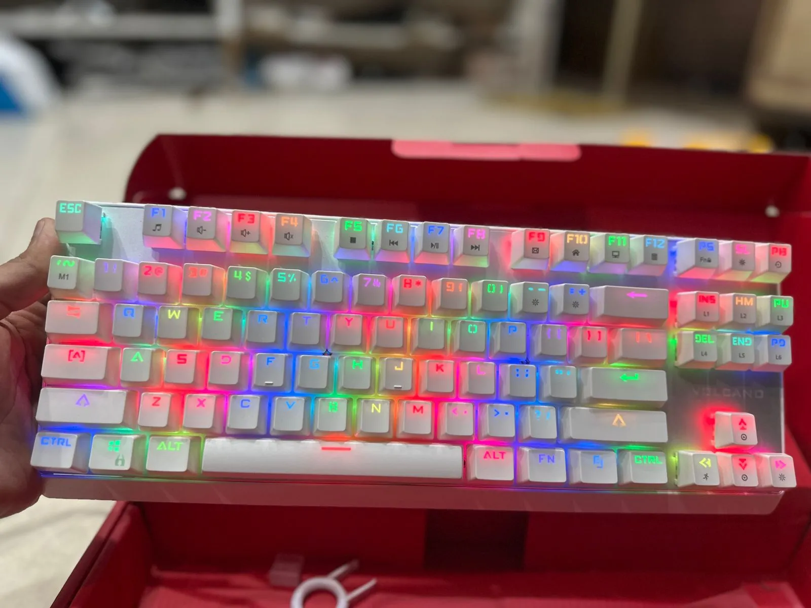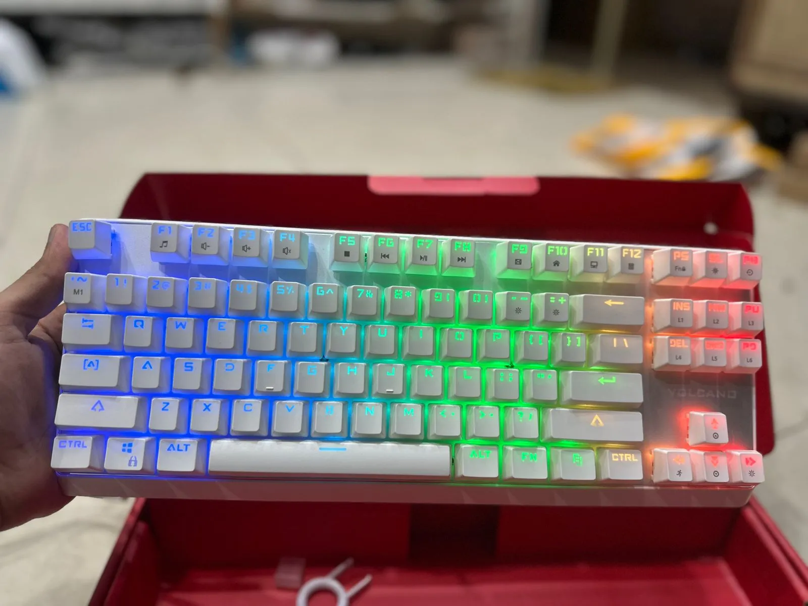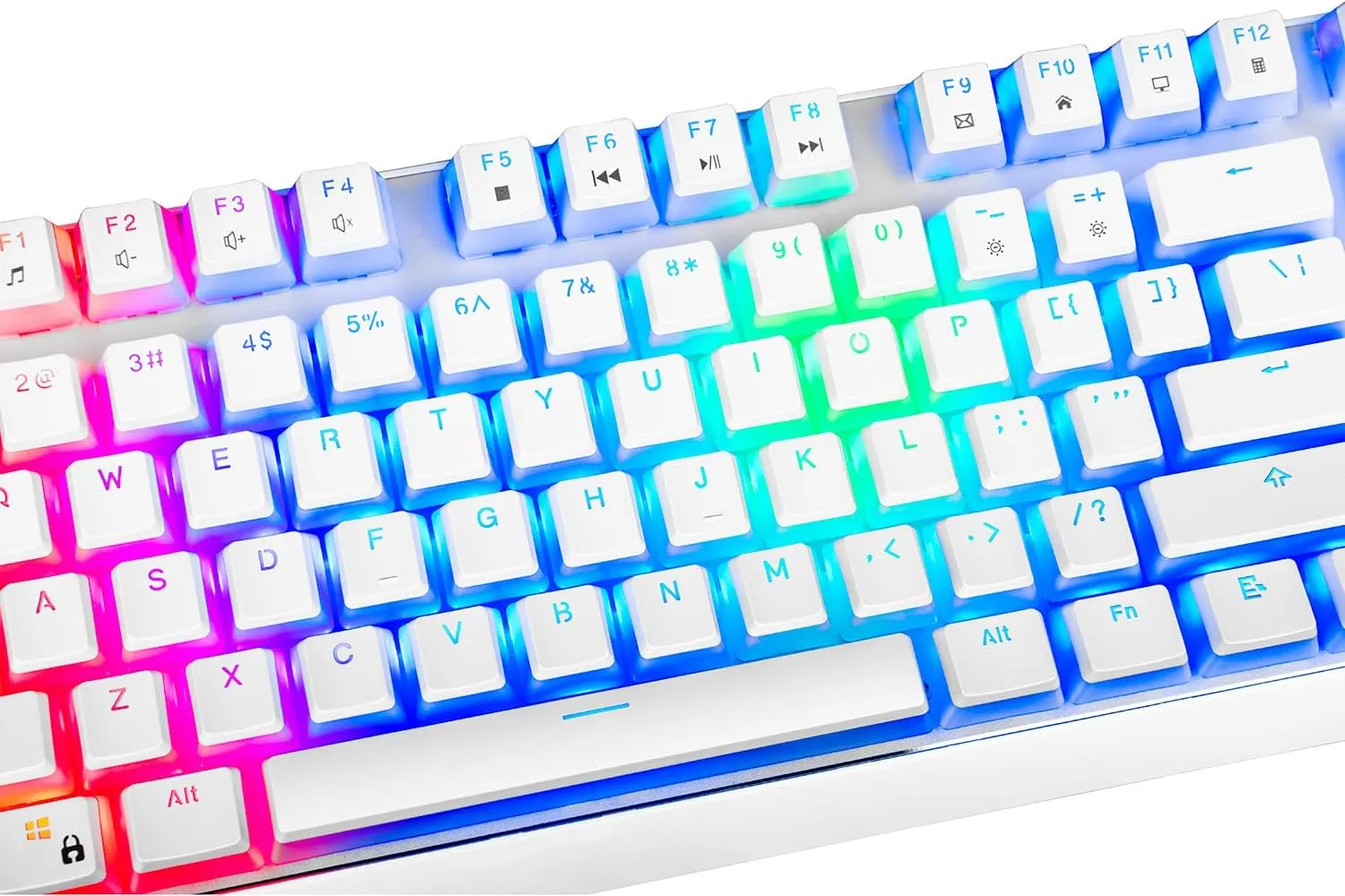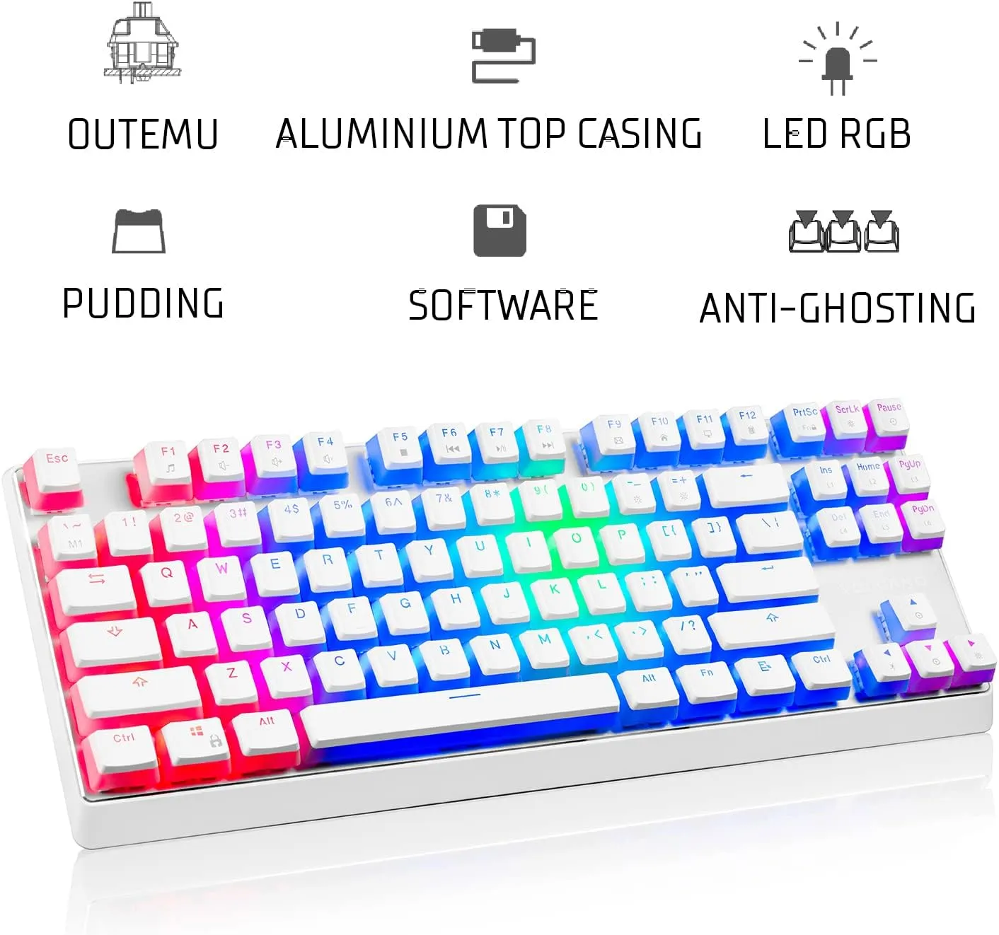 The pudding-style keycaps let RGB lighting shine through beautifully, creating vibrant effects across the keyboard — especially in low light.