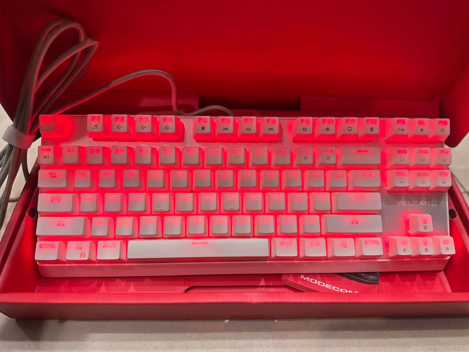 MODECOM VOLCANO LANPARTY RGB is an offer of an advanced keyboard, designed for gamers looking for high quality hardware, which they can rely on during long hours of sessions in the virtual world of computer games. In a compact design of MODECOM VOLCANO LANPARTY RGB we used a number of advanced features that come in handy while playing the games requiring tactical skills.