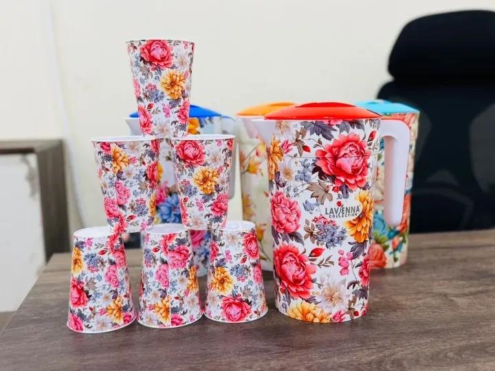 ug – Water Jug Set 7 Pcs – Water Jug & Glass set | Lavenna Drinking Water Jug with 6 Glass Large Capacity – Plastic Juice & Water Jug 2.5L, Storage For Home Kitchen Picnic, Outdoor, Outing, Use (Multicolor)