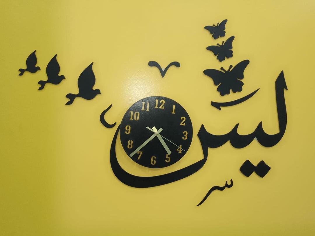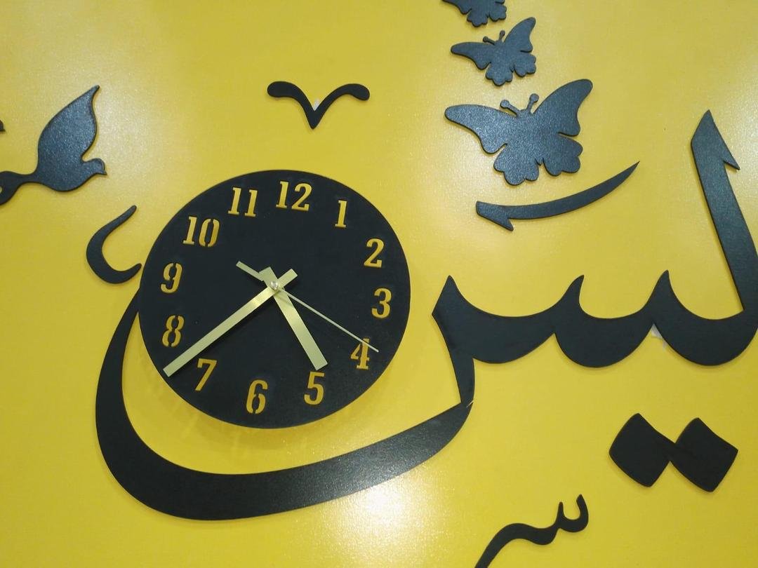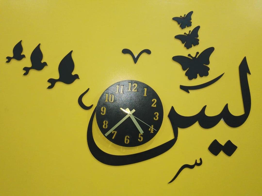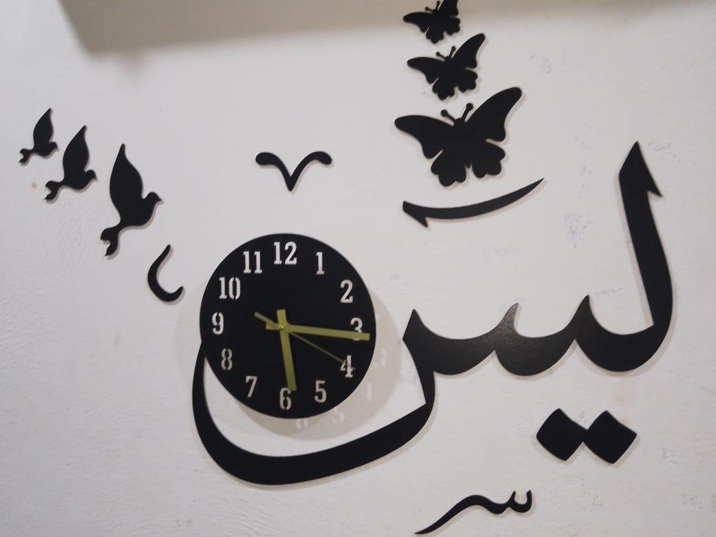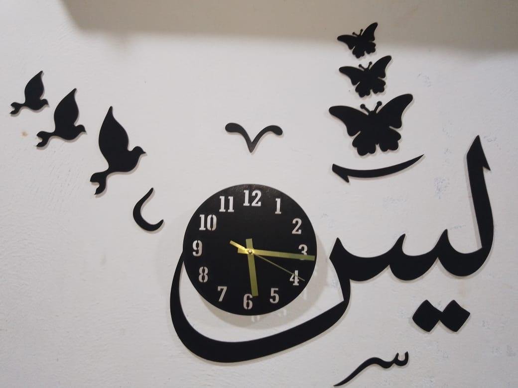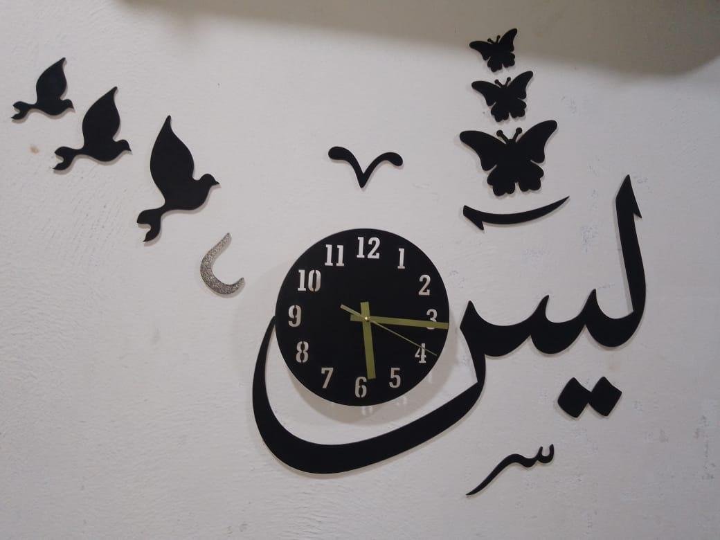 • Material: MDF• Number Of Pieces: 1 Pc• Product Design: Abstract Art• Product Feature: Accurate Quartz Movement, Easy-to-read Numbers, Stylish Design, Laser Cut, Complete Clock With Double Tape To Hang. Make Your Home Beautiful. This Product Enhances Any Home With On-trend Style And Beautiful Eye-catching Modern Design• Color: Black• Package Includes: 1 x 3D Wall Clock• Dimension:- Diameter Of Dialer Is 8 Inches. Total Size After Installation is 24 Inches Approximately.